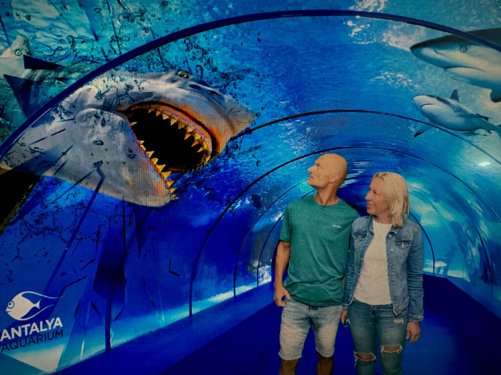 After a heartwarming visit to Alena’s dog kennel, we traded furry friends for finned ones! Today, we explored the incredible Antalya Aquarium. This massive complex boasted themed exhibits, a mind-blowing tunnel aquarium, and a dazzling array of underwater creatures.